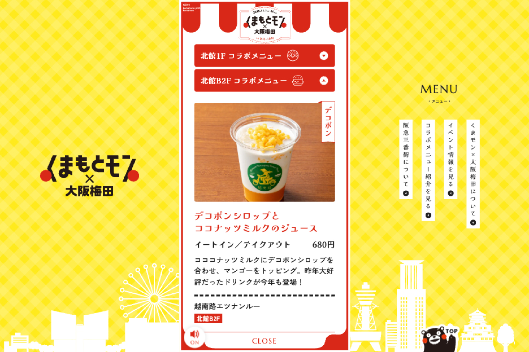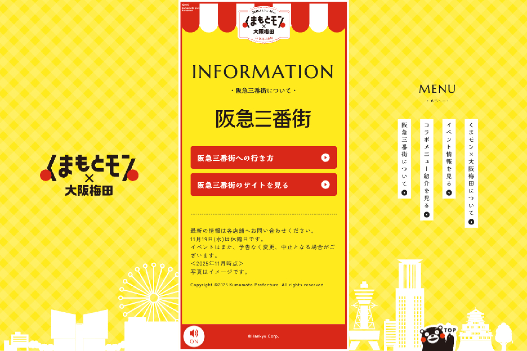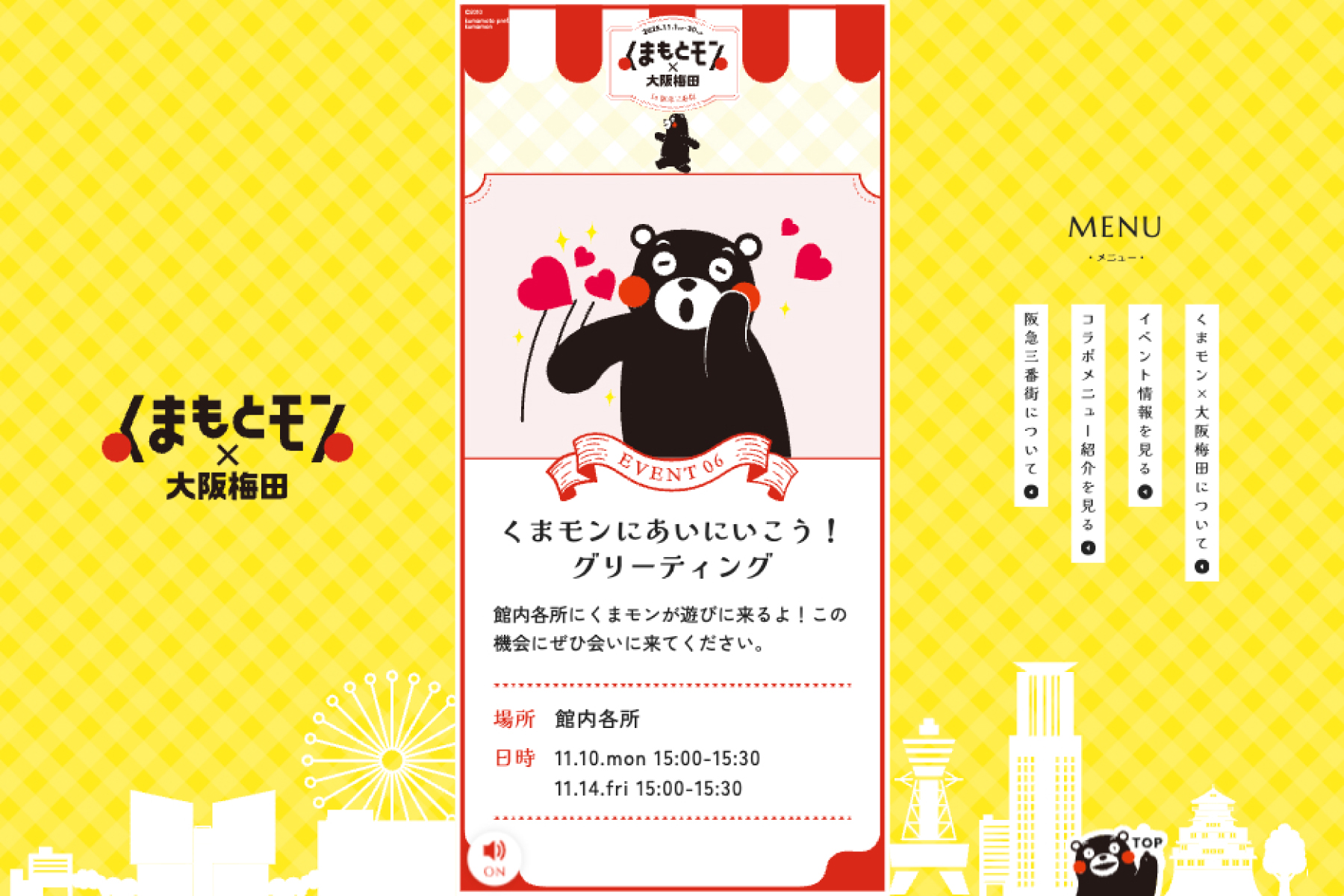 今回はウェブサイトに音楽も聴けるようになり、くまモンが動いたりと楽しんでいただければと思います!